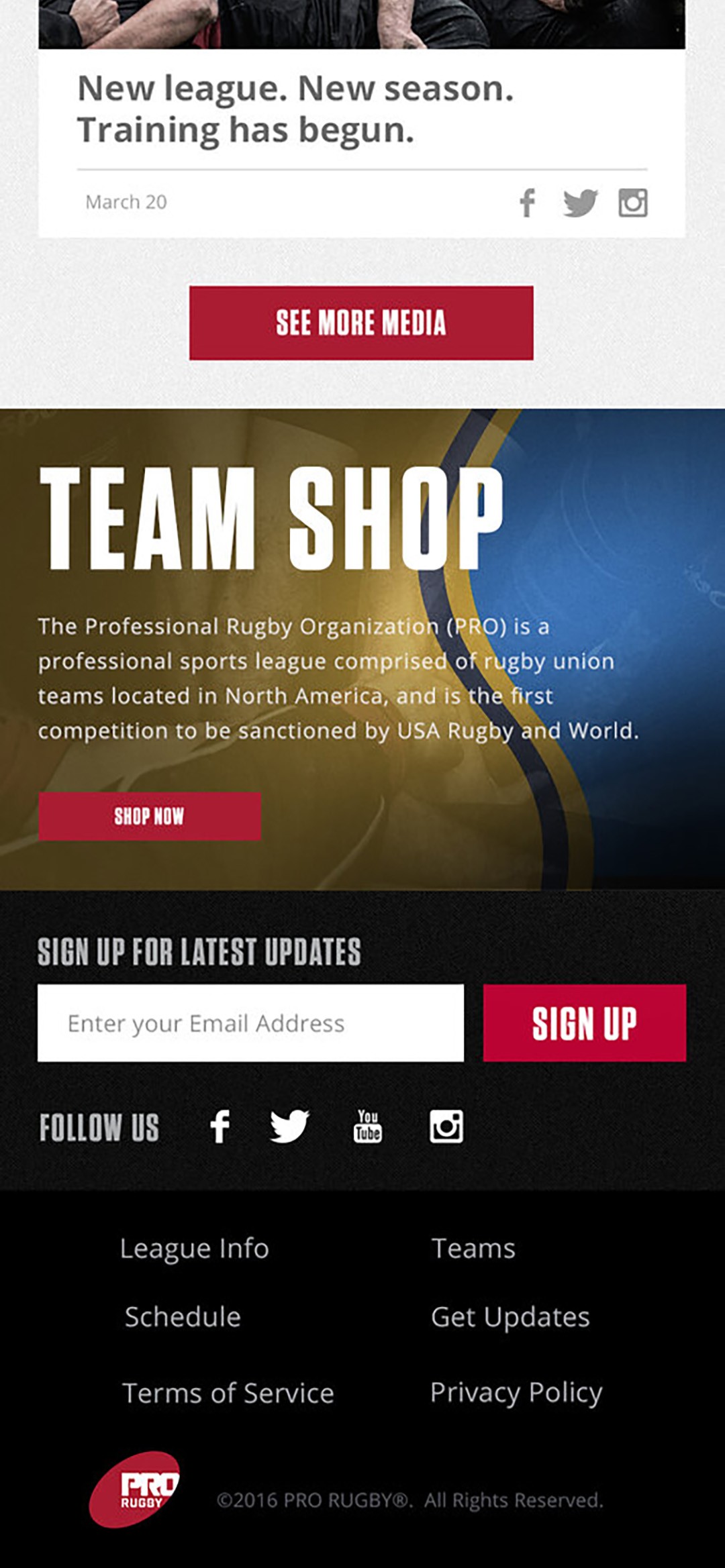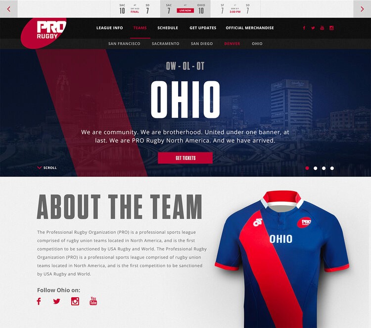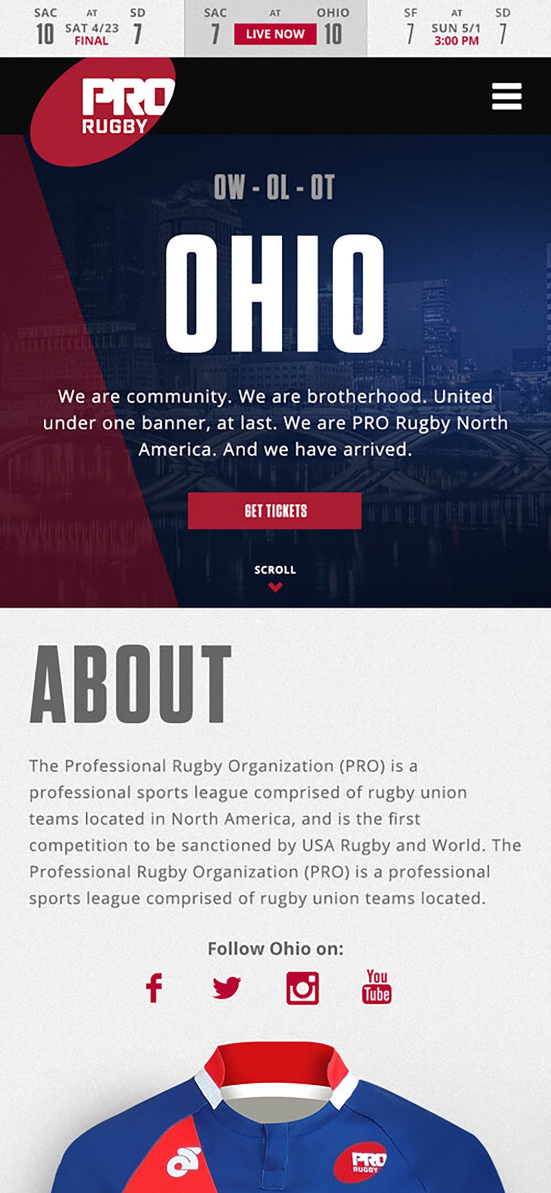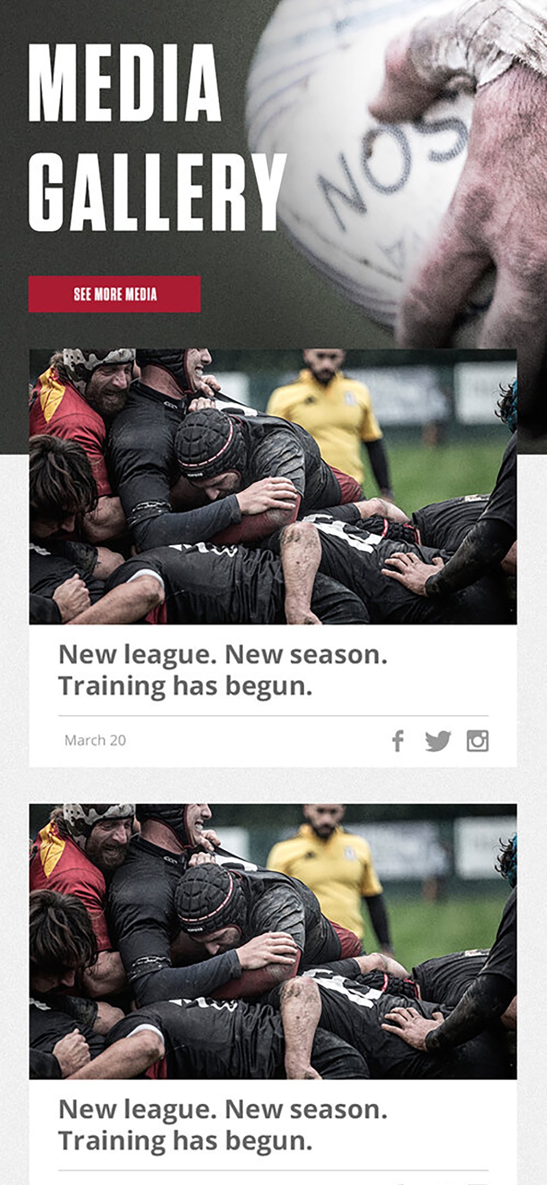 We wanted to hone in on the unique qualities of the sport and concluded that rugby is a game of big athletes, continuous action, and hitting. A lot of hitting. This informed our design and visually meant adding texture and grit with every post, image, and video.
