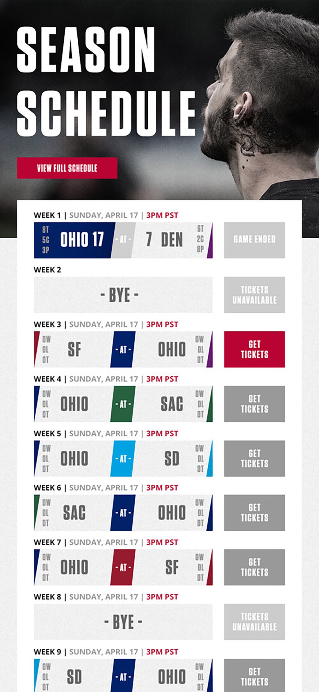 Once the season started, fans were hungry for results, and the website’s core layout gave them what they wanted with a hierarchy of evolving weekly content, such as match schedules and box scores. This adaptability allowed for updates to come through quickly and frequently.